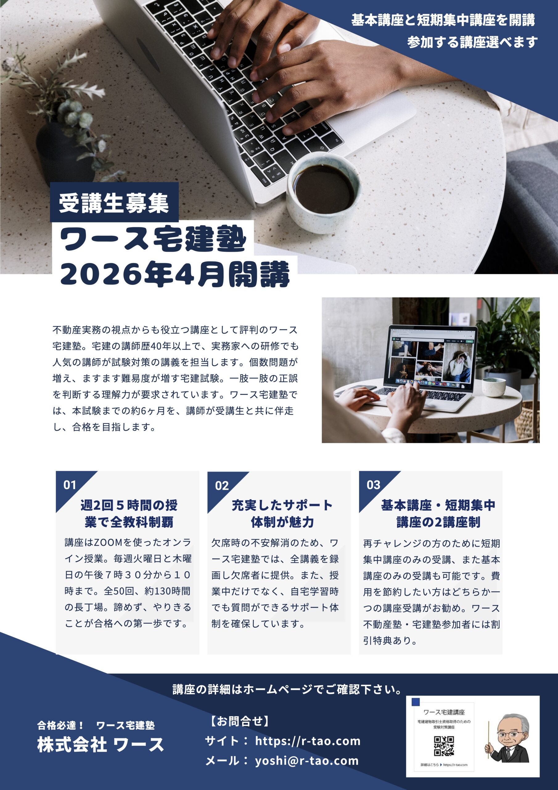 また宅建試験受験対策講座では40年以上の実績を持つワース代表が講義します。